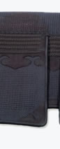 Superb quality Indigo-dyed deer skin. 7-line silk braid decoration. |